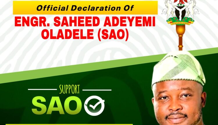 Ayete-born product development engineer, Engr. Saheed Adeyemi Oladele, popularly known as SAO, has declared his intention to contest the Ibarapa Central and North Federal Constituency seat in the 2027 general elections. He pledged to pursue inclusive representation, uphold accountability, and deliver development-driven leadership.