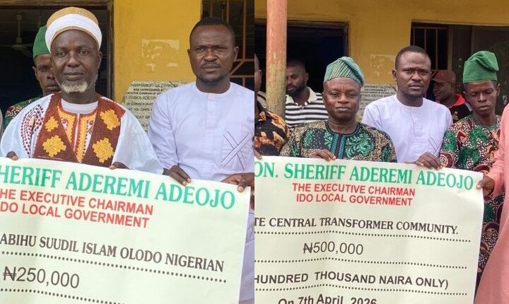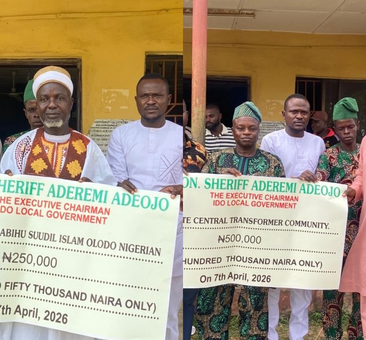 The Executive Chairman of Ido Local Government, Hon. Sheriff Aderemi Adeojo, has disbursed cash grants to various community and religious groups as part of efforts to promote grassroots development and social cohesion across the council area.