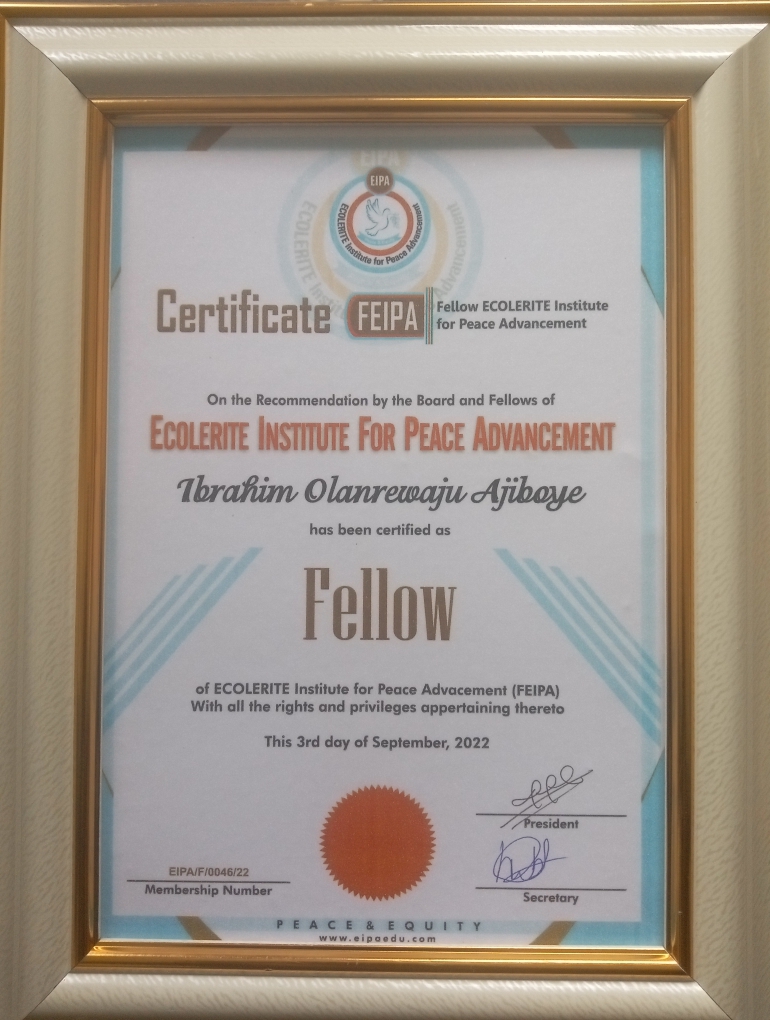 Ibrahim Ajiboye Omo Iya Eleja has been involved in several community-based organizations both in Nigeria and in the Diaspora, with a special focus on community development, youth empowerment, and capacity building to help the youths adapt successfully to the environment in the face of adversity, and advocacy for the less privileged and voiceless ones.