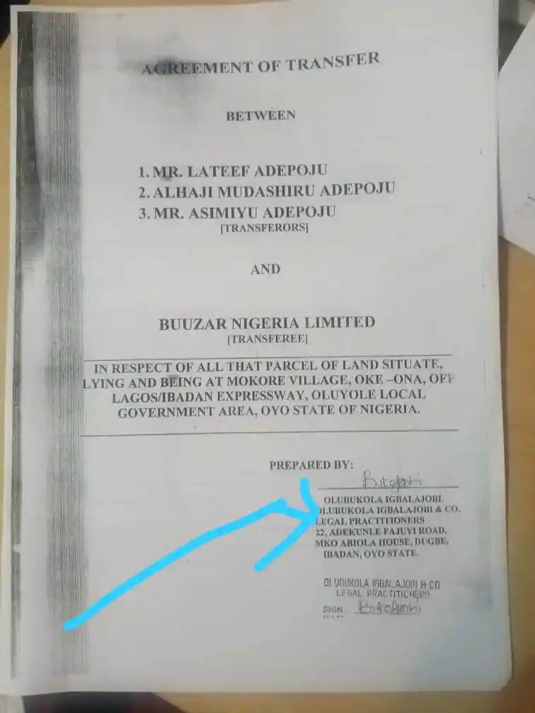 Below are the said copies of the fraudulent sale agreement prepared by SUKAZEEM’s lawyer: Barrister Bukola IGBALAJOBI