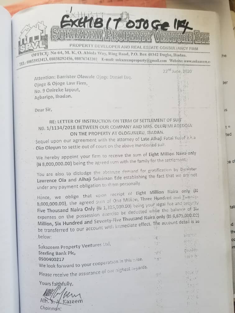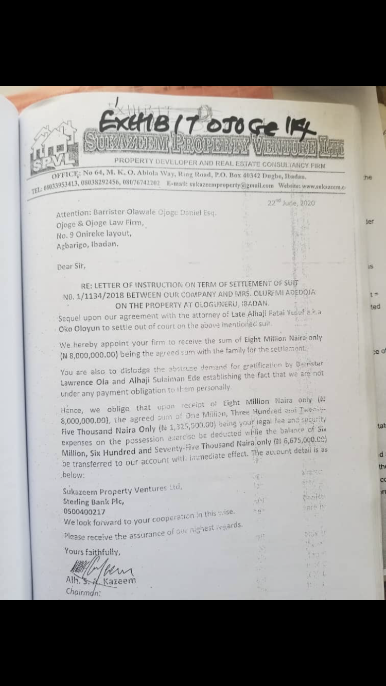 Recalled that, Alhaji Sufianu Ayinde Kazeem Sukazeem during an interview with our correspondent last week explained reasons he rejected three apology letters written to him by the said lawyer, Wale Ojoge Daniel. He accused Ojoge and wife of been fraudulent, noting that all the three letters written to him by Ojoge were in bad fate.