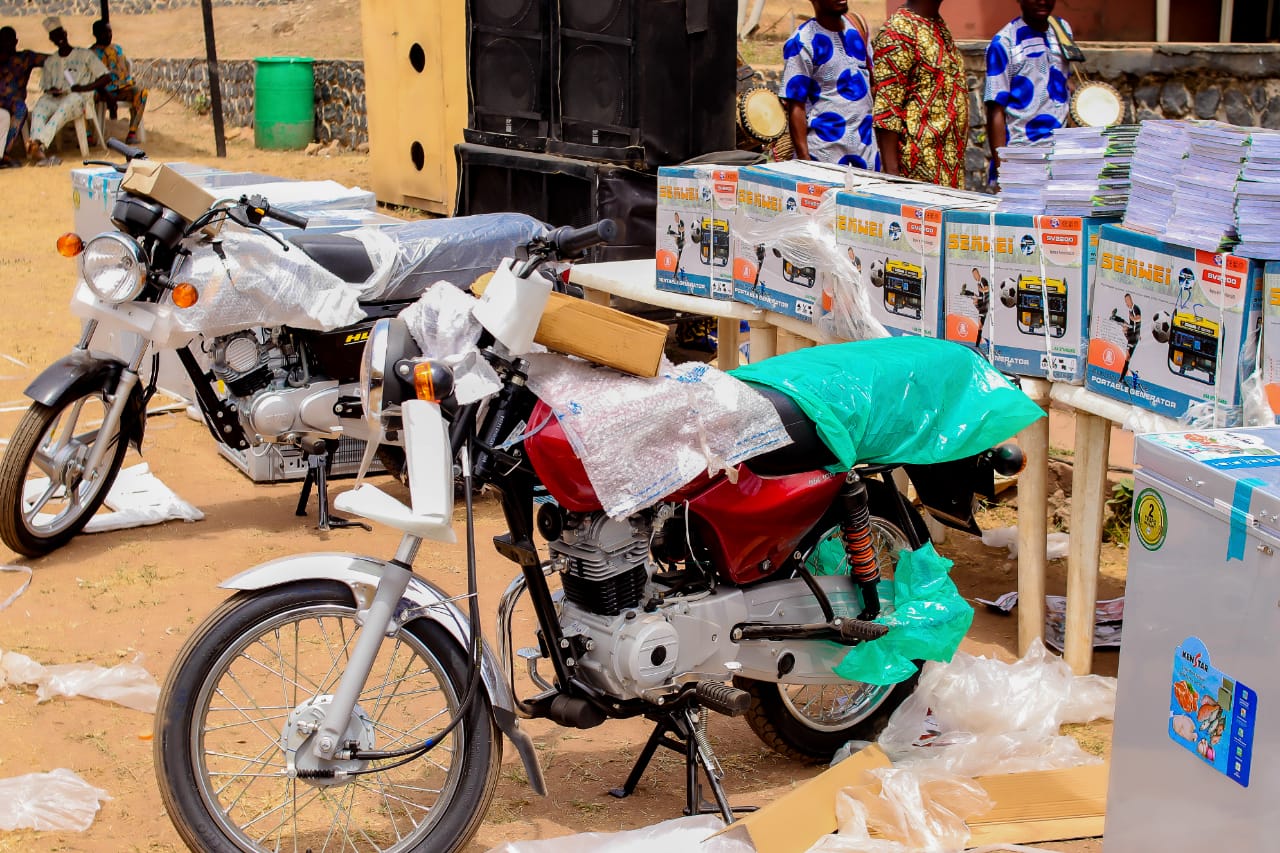 Other items distributed included, motorcycles, sewing machines, Poultry equipment for irrigation farming, locally fabricated wheelchairs, grinding machines, refrigerators and generators to mention a few.