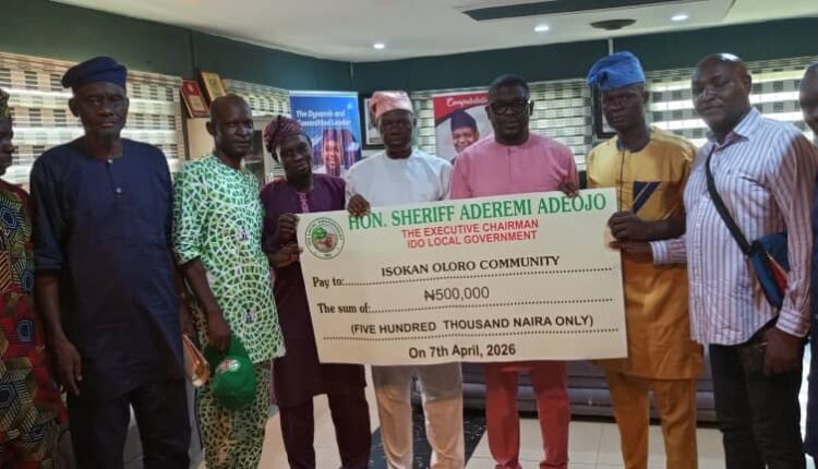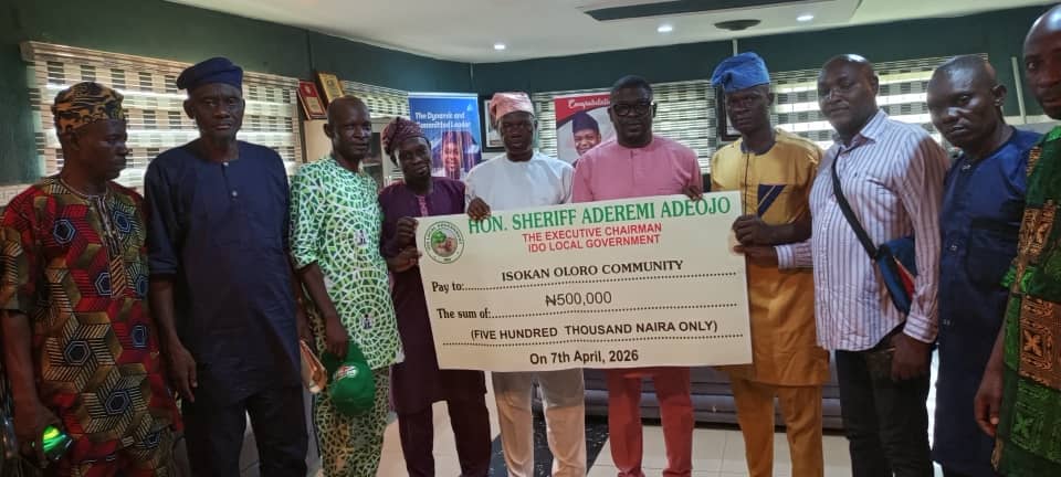 The Executive Chairman of Ido Local Government, Hon. Sheriff Aderemi Adeojo, has provided a cash support of N500,000 to the Isokan Oloro Community as part of efforts to promote grassroots development and improve the welfare of residents.