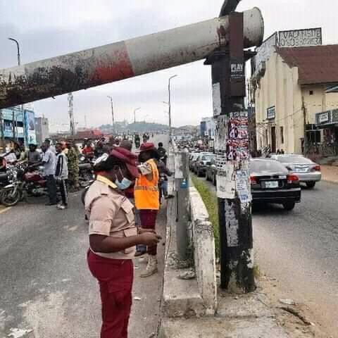Just In : Mokola Flyover Barricade Partially Collapses ( Photos )