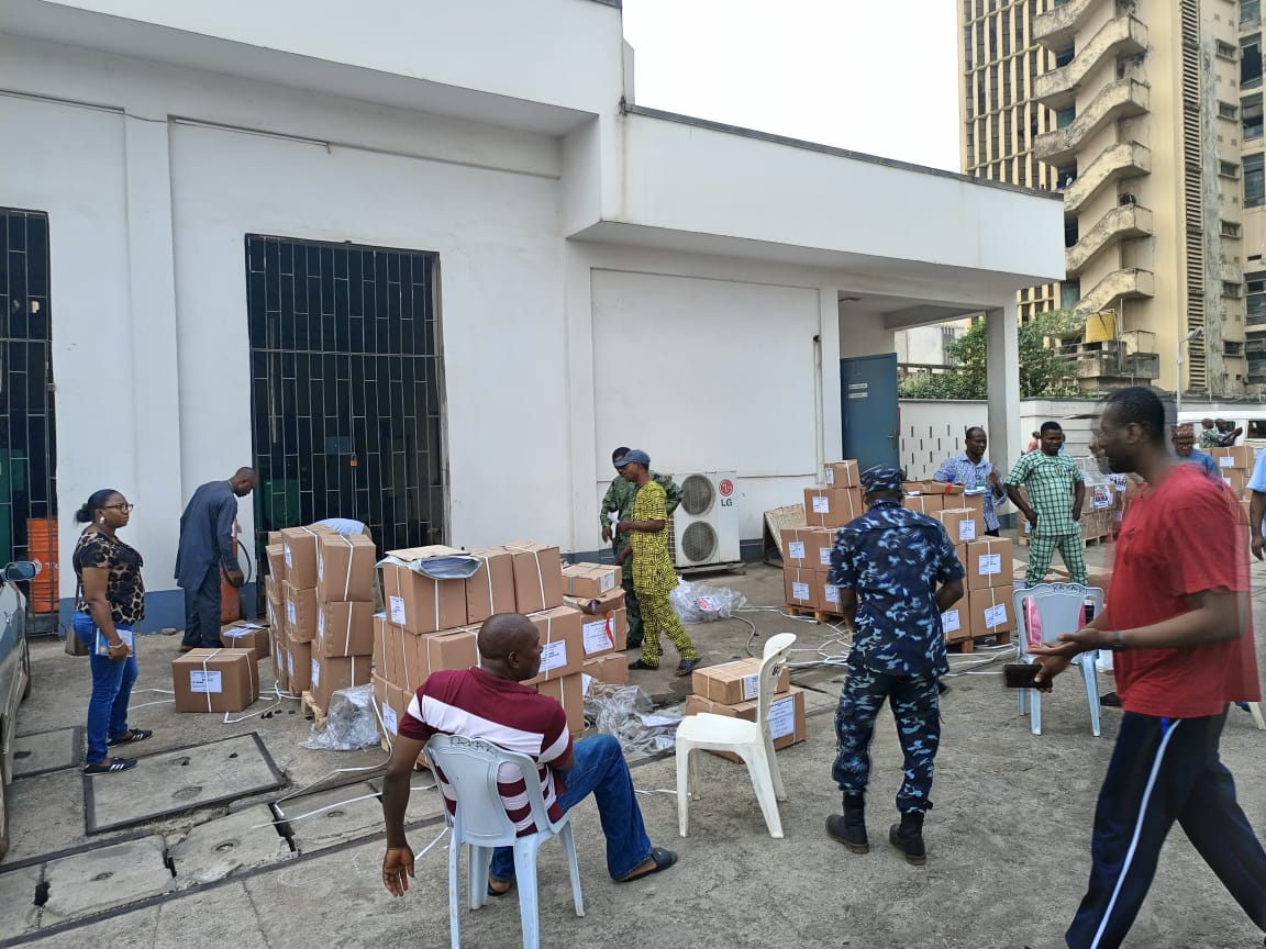 The distribution which was done at the Central Bank of Nigeria, CBN with tight security had representatives of political parties amidst tight security.