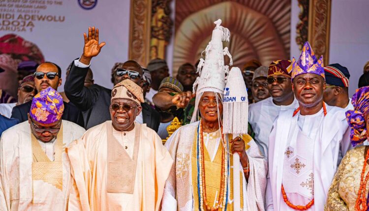 Traditional music, including Ebenezer Obey’s “Ibadan,” filled the air, celebrating unity and pride before Taye Currency entertained the gathering. The arrival of the president and Governor Makinde, who presented the staff of office, was met with cheers. Christian and Muslim clerics led prayers before cultural performers returned with praise, poetry and dance.