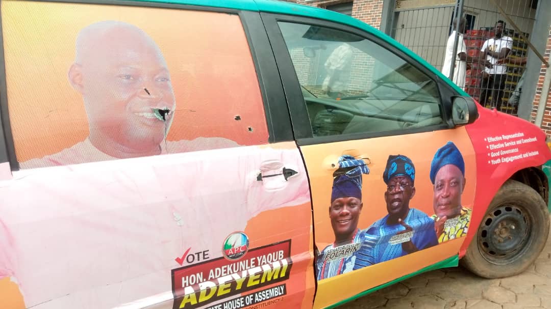 Political Thugs Shoot At APC Assembly Candidate In Ibadan, Destroy Campaign Vehicle • Victim Says Auxiliary Led The Gang