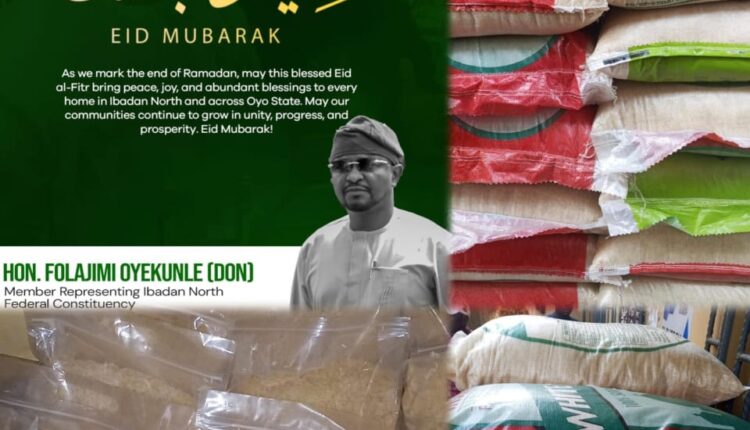 The Member representing Ibadan North Federal Constituency in the House of Representatives, Folajimi Oyekunle (DON), has extended warm felicitations to Muslim faithful across Ibadan North and Oyo State as they celebrate this year’s Eid-ul-Fitr.