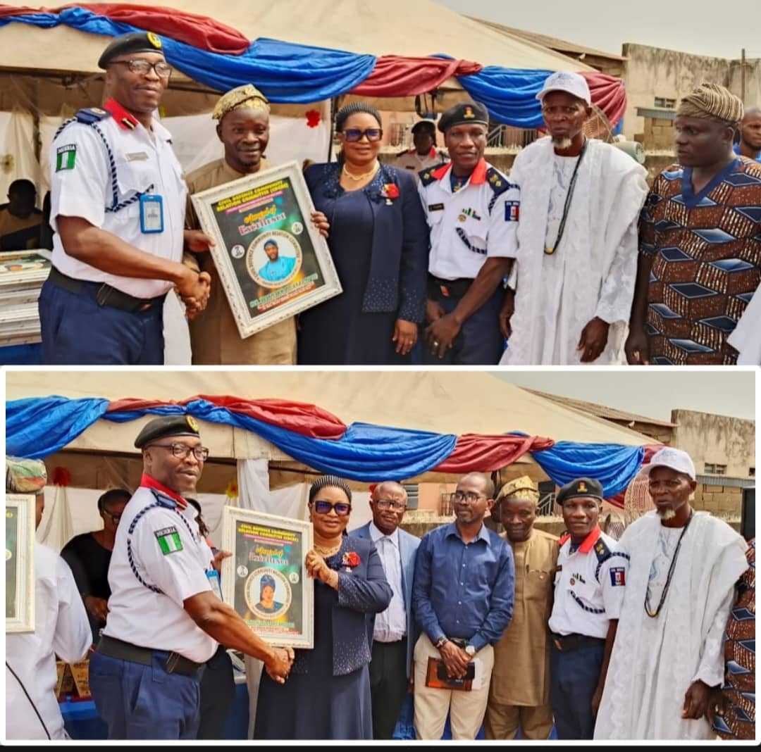 The Chairman of Ibadan North-East Local Government, Hon. Ibrahim Akintayo (popularly known as *O mu Yes*), and the Head of Local Government Administration (HLGA), Mrs. Omolara Aremu, were on Tuesday honoured by the Civil Defence Community Relations Committee (CDCRC), Ibadan North-East Division, with Awards of Excellence in recognition of their outstanding contributions to security, governance, and community development.