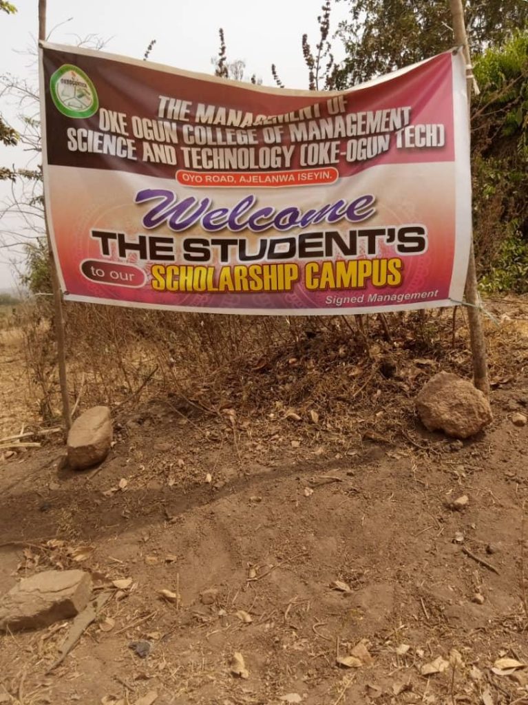 The school, Oke-Ogun College of Management Science and Technology and The College of Education Iseyin (Oke-OgunTech) is located at Ajelanwa village, along Iseyin-Oyo road.
