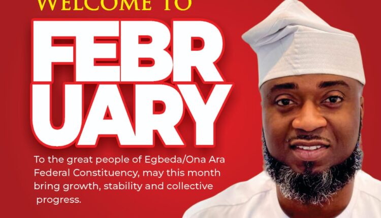 Hon. Tosin Alabi, a Federal House of Representatives hopeful for the Egbeda/Ona-Ara Federal Constituency, has extended warm new month greetings to the good people of the constituency as they step into the month of February.