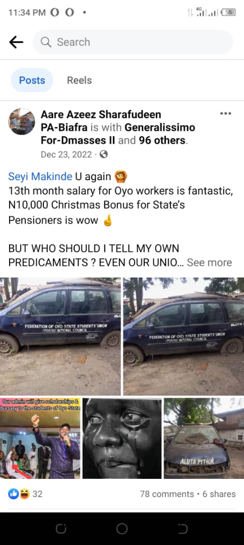 Three and half years after, Comrade Azeez Sharafudeen, Aáre Biafra, a warrior who fought on the battlefield was never allowed to taste the victory. He is not only subjected to ridicule but was also said to have lost his integrity and value among his student loyalists who believed in his leadership capacity to join him to work for the emergence of governor Seyi Makinde.